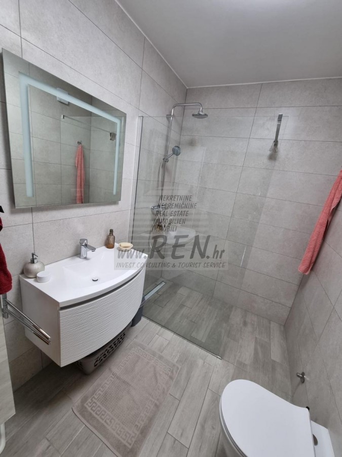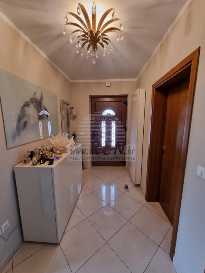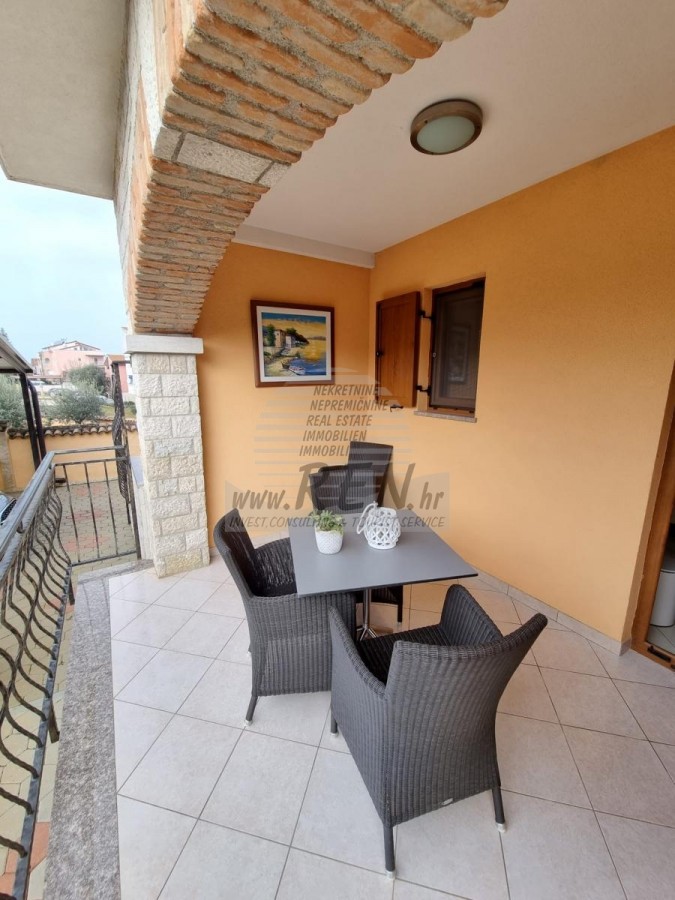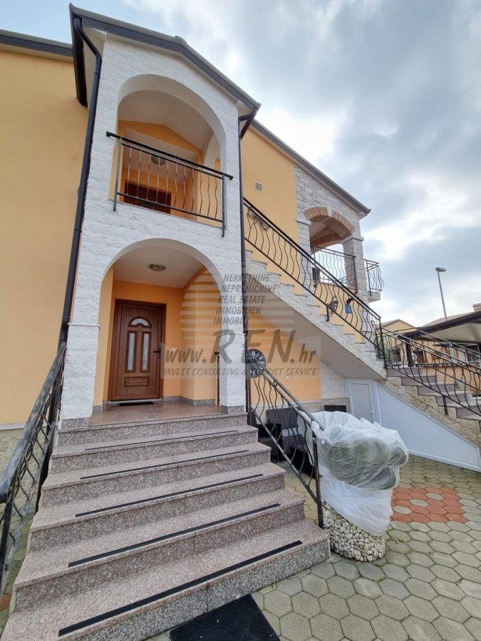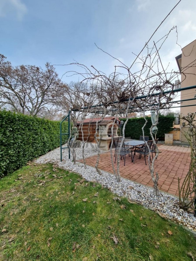 Doppelhaushälfte, komplett möbliert, 2 km vom Meer entfernt Immobilien Istrien, Haus zu verkaufen, Poreč Das Haus hat insgesamt 144 m2, das Grundstück hat 644 m2, es ist 5 min. (2000m) vom Meer und von einem wunderschön angelegten Naturstrand, 5 Min. (2000 m) vom Zentrum von Poreč entfernt. Das Haus besteht aus zwei Wohnungen. Jede Wohnung erstreckt sich über zwei Ebenen und ist 72 m² groß, was ein großer Vorteil ist, wenn Sie eine Wohnung mieten und in der anderen wohnen möchten. Jede Wohnung besteht aus zwei Wohnzimmern, Esszimmer und Küche, zwei Schlafzimmern und einer überdachten Terrasse. Die Terrasse im ersten Stock bietet einen Blick auf das Meer. Die Wohnungen sind gut ausgestattet und sofort bezugsfertig. Jedes Zimmer verfügt über eine Klimaanlage. Für die Beheizung sorgt neben der Klimaanlage auch ein Pelletofen. Auf dem angelegten Gartengrundstück des Grundstücks befindet sich ein kleines Haus mit einer Sauna und einer großen Hydromassagewanne. Das Haus ist 200 m von einem Geschäft, 200 m von einem Restaurant, 500 m von einem Markt, einem Arzt 1000 m, einer Apotheke 1000 m, dem Flughafen Pula 60 km, dem Flughafen Portorož 35 km und dem Yachthafen entfernt Poreč 4500 m. Für weitere Informationen stehen wir Ihnen gerne zur Verfügung.