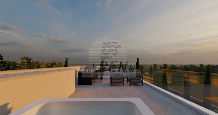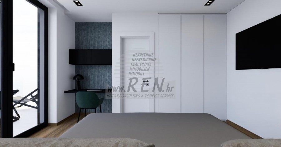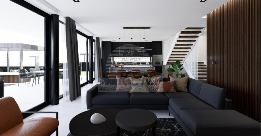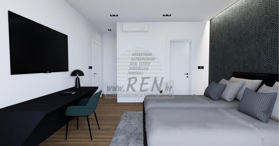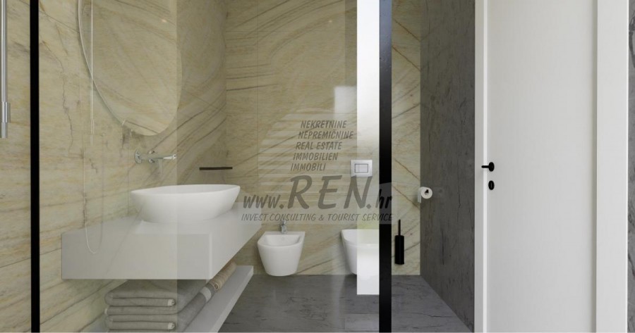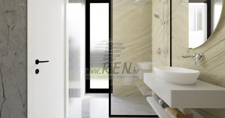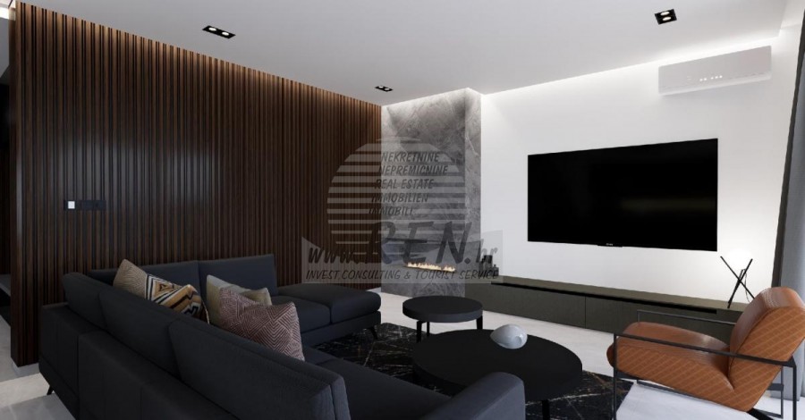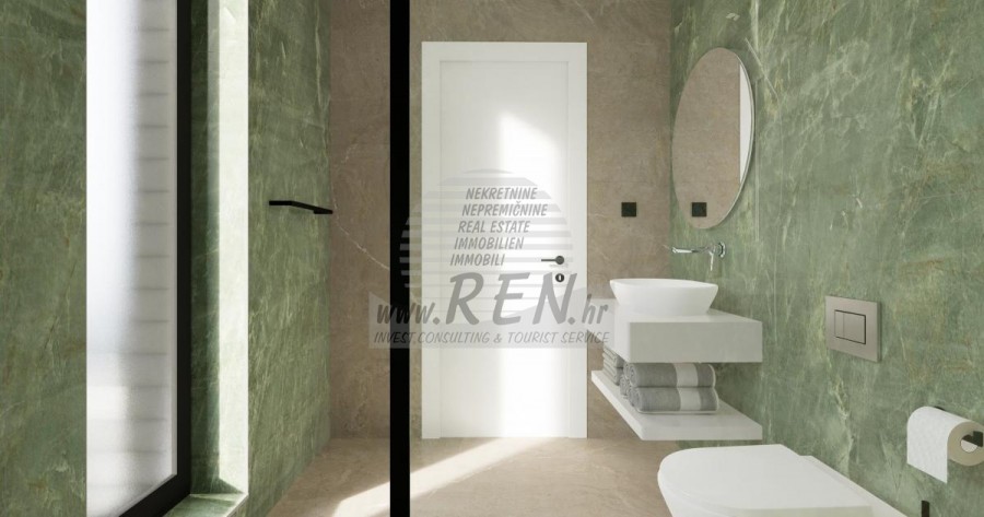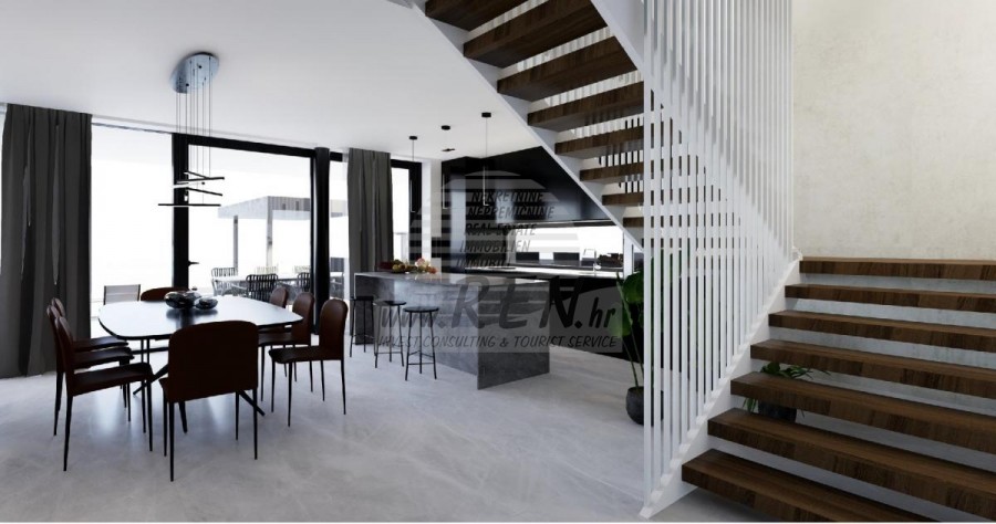 Der Villenkomplex befindet sich auf einer Fläche von 3730 m2. Es besteht aus 4 freistehenden, komplett möblierten und ausgestatteten Gebäuden mit Blick auf das offene Meer. Bruttowohnfläche jedes Hauses: 270 m2 (es zählen nur geschlossene Flächen) Netto-Innenwohnfläche: 204 m2 (geschlossener Teil) Netto, offen überdacht und nicht überdacht: 310 m2 (Sonnenliege, Überdachung, Balkone, Wege, Feuerstelle, Dachterrasse, Außentreppe) Parken: 3 Parkplätze (40 m2), jedes Haus. Schwimmbad: 36 m2 Wasserfläche Villa Parenzo eins - Grundstück 864 m2 - Grünfläche 328 m2 Energieklasse: A (20 kWh/m2 pro Jahr) Grundriss: P+1, (Erdgeschoss + Obergeschoss) Das Erdgeschoss besteht aus einer Eingangshalle, einer Treppe für den Zugang zum ersten Stock und der Dachterrasse, einem Wohnzimmer, einer Küche und einem Esszimmer, einem Schlafzimmer mit separatem Badezimmer, einer zusätzlichen Toilette, einem Badezimmer und einer Sauna. ein Technikraum mit Waschküche, ein Abstellraum und eine Außentoilette, die jeweils über einen separaten Eingang verfügen. Im ersten Stock gibt es eine Treppe, einen Flur, drei Schlafzimmer mit separaten Badezimmern und einen Fitnessraum. Es gibt auch Zugang zur Dachterrasse, wo sich eine Außenbar, eine Liegewiese und eine Hydromassagewanne befinden. In der Umgebung gibt es einen beheizten Außenpool, eine Liegewiese, eine überdachte Terrasse zum Essen, eine Überdachung mit Sommerküche und eine nicht überdachte Terrasse direkt neben dem Pool. Im unteren Teil des Hofes befindet sich eine Feuerstelle. Im Innenhof gibt es außerdem eine Designer-Außendusche mit Warmwasser und einem Bodensiphon. Die gemietete Stromleistung beträgt 18,86 kW – dreiphasig, für jedes Haus. Außenschreinereiarbeiten: Großformatiger Aluminium-Schlosser. Aluminiumprofil - ALIPLAST. Glas SUNGUARD SN 70/35 HT 6 mm gehärtet (70 % Lichtdurchlässigkeit, 35 % Solarfaktor). 1,0 W/m²K (U-Wert) + 16 mm Al schwarz, PU, Argon + FLOAT CLEAR, 6 mm gehärtet. Profile mit unterbrochener Wärmebrücke, plastifiziert (RAL 7016). Alle Türen, Fenster und Festpositionen werden im ALIPLAST SUPERIAL 800- und SUPERIAL-System hergestellt (Rahmentiefe 75 mm, Flügeltiefe 75 mm). Die Schiebepositionen werden im ULTRAGLIDE-System (Rahmentiefe 154 mm) hergestellt. Der Wärmedurchgangskoeffizient liegt für alle Positionen unter 1,3 W/(m2*K). Wanddämmung: Erdgeschosskombination aus Styrodur XPS 8 cm + Steinverkleidung 5 cm und Styropor EPS 10 cm, dort wo kein Stein vorhanden ist. Böden aus Styropor EPS 16 cm – weiße Fassade und Styropor 10 cm auf anthrazitfarbenen Teilen. Handbehauener Kanfanar-Stein, 5 cm dick. Heizung: Vailant, externe Luft-Wasser-Wärmepumpe mit Stromantrieb – 10,3 kW Heizsystem und Warmwasseraufbereitung der Energieklasse A++, mit zusätzlichem Maschinenraum im Haus und einem 300-Liter-Boiler und Zirkulation. Fußbodenheizung in allen Räumen mit separaten Raum-/Badreglern. Mögliche Fernbedienung über Wi-Fi-Netzwerk. Kühlen/Aufwärmen: Es wurde ein Samsung Multi Split System mit zwei Außengeräten und 6 Innengeräten installiert. Ausgestattet mit der Möglichkeit, den Raum auf bis zu -30 °C Außentemperatur zu kühlen und zu heizen. Darüber hinaus verfügen die Geräte über die Wind-freeTM-Technologie für einen angenehmen Luftstrom. Mögliche Fernbedienung über Wi-Fi-Netzwerk. Ausrüstung: • Hochwertige Sanitärausstattung von Duravit, Wasserhähne von Grohe, Entwässerungssysteme von Geberit und Tece, Spülkästen von Grohe, begehbare Dusche. • Hochwertige Keramik von den bekanntesten italienischen Herstellern (Graniti Fiandre, Panaria, Keope, Love). In den Bädern großformatige Keramik, bis zur Decke platziert. • Eingebautes System zur Wasserenthärtung aus dem Wasserversorgungsnetz. • Integriertes High-End-Ajax-Alarmsystem mit Bewegungssensor, Wasserleckdetektor und Feuermelder. Ausführung in Schwarz. • DVC-Videoüberwachung mit 2 TB HDD-Recorder und 4 externen IP-Kameras mit 5 Mpx. • Beleuchtung vom österreichischen Hersteller Eglo. • Interne Schalter, Knöpfe und Steckdosen der italienischen Marke Bticino der Legrand-Gruppe. • Eingebaute komplette Antennen- und Satellitenanlage für jeden Raum. • Eingebaute zusätzliche WLAN-Signalverstärker im Haus und auf der Außenterrasse. • Innentüren des bekannten italienischen Herstellers Braga mit verdeckten Scharnieren und Magnetschlössern, 44 mm breit, Bianco Matrix-Design mit schwarzen Prisma-Griffen. • Video-Gegensprechanlage mit Steuerung zum Öffnen der Vordertür und elektronischer Steuerung. das Tor. • Wallbox-Ladegerät zum Laden von Mercedes-Benz Elektroautos bis 22 kW • Biokamin im Wohnzimmer • Außenrinnen und Abflüsse auf Terrassen und Balkonen des deutschen Spitzenherstellers Aco • Glasgeländer auf Balkon und Dachterrasse Küche und Möbel • Dan Kuchen Küche, Modell Silbermond in Anthrazit-Version – Küche und Insel, mit Sapienstone – Fior di Bosco Keramikarbeitsplatte 12 mm dick. • Die Küche ist mit allen notwendigen Einbaugeräten von Bosch ausgestattet (Backofen, Mikrowelle, Herd, Geschirrspüler und kombinierter Kühlschrank). • Auf der Insel ist auch ein Weinkühlschrank der Marke Candy installiert. • Franke-Spüle, Grohe-Wasserhahn, Faber-Haube mit Belüftungskanal. • Waschmaschine und Wäschetrockner Bosch, Serie 6, beide mit einem größeren Fassungsvermögen von 9 kg, in einem speziell dafür vorgesehenen Schrank im Technikraum untergebracht. • Smart-TV in allen Zimmern, die Größe im Wohnzimmer beträgt 75'' QLED 4K und alle anderen Zimmer haben TV-Größen 55'' UHD LED 4K. • Die Schlafzimmer sind mit Doppelbetten mit Premium-Matratzen der Linie Hespo Luxury Plus, Einbauschränken, einem Schreibtisch mit einem Kave Home-Sessel und Nachtlampen ausgestattet. • In allen Räumen wurden Piere-Cardin-Teppiche verlegt, und ein Teil der Wände ist mit Lamelio Milo-Lamellen in Walnussfarbe und Wandtapeten der deutschen Marke Hohenberger verkleid