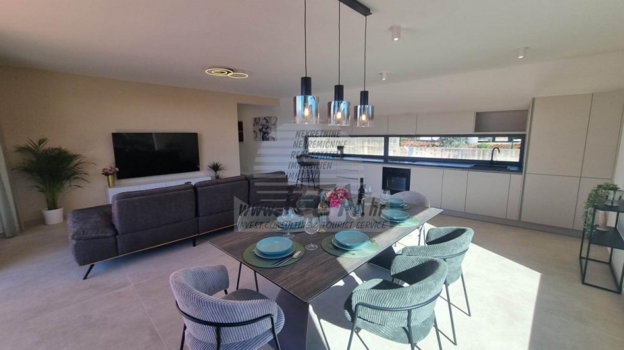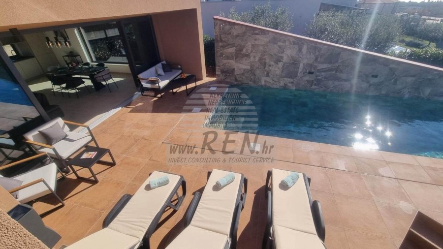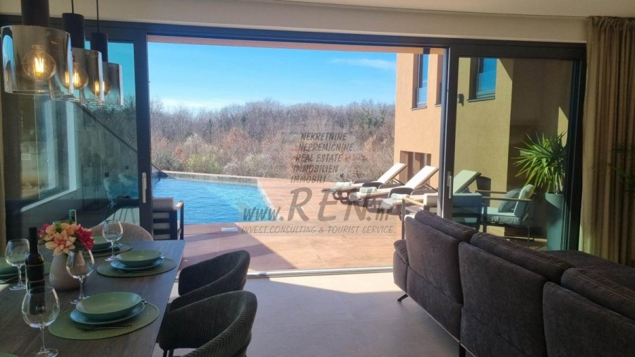 Immobilien Istrien, Zum Verkauf eine Haus mit Pool in Novigrad Das Haus in Novigrad hat insgesamt 171 m2, es ist 5 min. (2000 m) vom Meer und vom wunderschön angelegten Strand entfernt, 5 Min. (2000 m) vom Zentrum von Novigrad entfernt. Das Haus verfügt über ein Erdgeschoss und einen ersten Stock. Das Haus besteht aus einer Küche/Wohnzimmer/Esszimmer, Abstellraum, 3 Schlafzimmern, 3 Badezimmern, Terrasse + Garten. Es ist mit Klimaanlage, Swimmingpool, privatem Parkplatz und Meerblick ausgestattet. Das Haus ist nur etwa 1500 m vom Verkaufsladen, vom Restaurant 1000 m, Marktplatz 3000 m, Arzt 3000 m, Apotheke 3000 m, vom Flughafen in Pula 60 km und vom Flughafen in Portorož 30 km, von der Marine Novigrad 1000 m, und von dem Aquapark (Istralandia) 7 km. Für weitere Auskünfte stehen wir Ihnen gerne zur Verfügung.