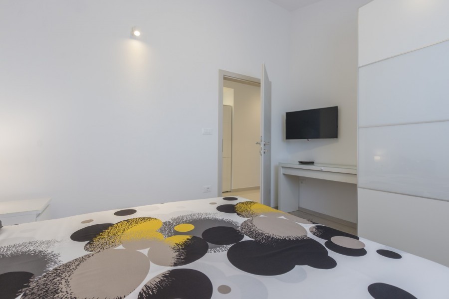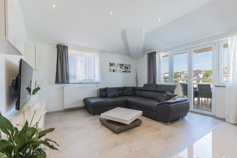 In ausgezeichneter Lage in Medulin steht eine geräumige und modern ausgestattete Wohnung von 95 m2 zum Verkauf. Die Wohnung befindet sich im zweiten Stock eines kleineren Mehrfamilienhauses und ist nur wenige Gehminuten von der Promenade, dem Ufer, den Stränden und anderen Annehmlichkeiten entfernt. Die Wohnung besteht aus einem Flur, 2 Schlafzimmern, 2 großen Badezimmern, Wohnzimmer mit Esszimmer und Küche sowie einer großen Terrasse. Die Küche ist komplett ausgestattet, inklusive aller Geräte (Geschirrspüler, Induktion und Mikrowelle). Alle Räume der Wohnung sind hochwertig und modern ausgestattet und möbliert. Das Besondere ist die sorgfältig ausgewählte Beleuchtung, die im gesamten Raum eine angenehme Atmosphäre schafft. Die Wohnung ist mit einer raumhohen Gasheizung ausgestattet, zur Kühlung wird eine Klimaanlage genutzt. Zur Wohnung gehört außerdem ein Abstellraum im Dachgeschoss, sowie 1 Parkplatz.