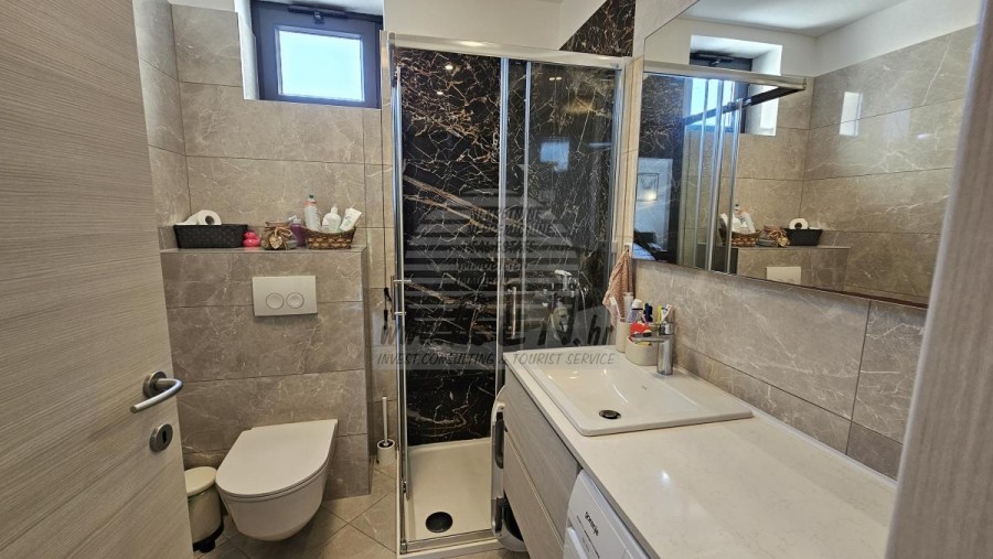 Immobilien Istrien, Zum Verkauf eine Wohnung-Appartement in Novigrad Die Wohnung in Novigrad hat insgesamt 87,97 m2, befindet sich im zweiten Stock, besteht aus Eingangshalle, Küche, Speisekammer, Wohnzimmer mit Esszimmer, Flur, drei Schlafzimmern, Badezimmer, Toilette, Terrasse und Holzschuppen. Die Wohnung wurde 2020 komplett renoviert. Neue Elektro- und Wasserinstallationen, Verglasung, Boden- und Deckenisolierung (Styropor und Steinwolle), PVC-Fenster wurden eingebaut, und an der Hauptleitung wurde ein Wasserenthärter installiert. Die Wohnung wird möbliert verkauft. Die Heizung erfolgt über Infrarotpaneele, die Kühlung über eine Klimaanlage. Der Parkplatz befindet sich vor dem Gebäude. Ein zusätzlicher Parkplatz befindet sich hinter dem Gebäude, wo es möglich ist, ein Elektrofahrzeug an der Steckdose aufzuladen. Die Wohnung ist nur etwa 100m vom Verkaufsladen, vom Restaurant 200m, Marktplatz 500m, Arzt 500m, Apotheke 500m, vom Flughafen in Pula 70 km und vom Flughafen in Portorož 30 km, von der Marine Novigrad 300m, und von dem Aquapark Istralandia 5 km entfernt. Für weitere Auskünfte stehen wir Ihnen gerne zur Verfügung.