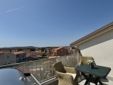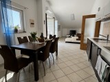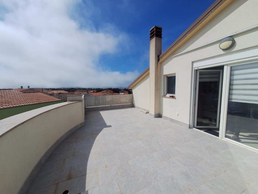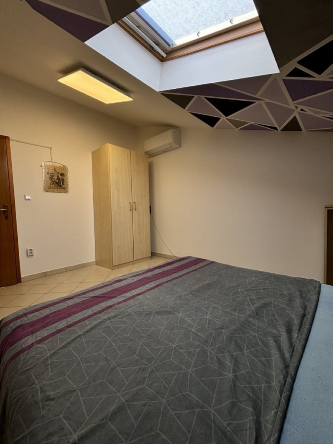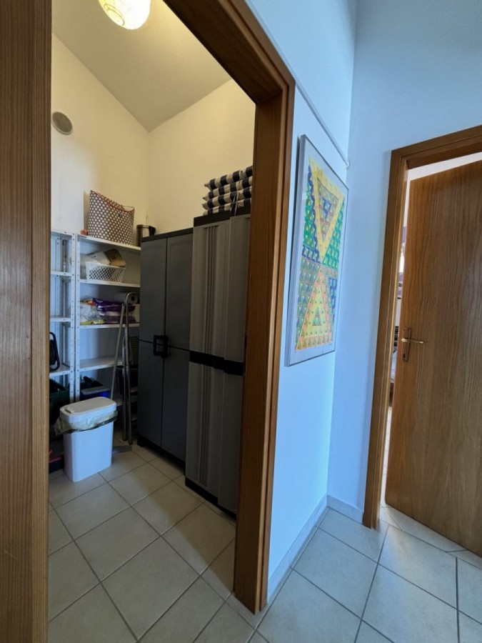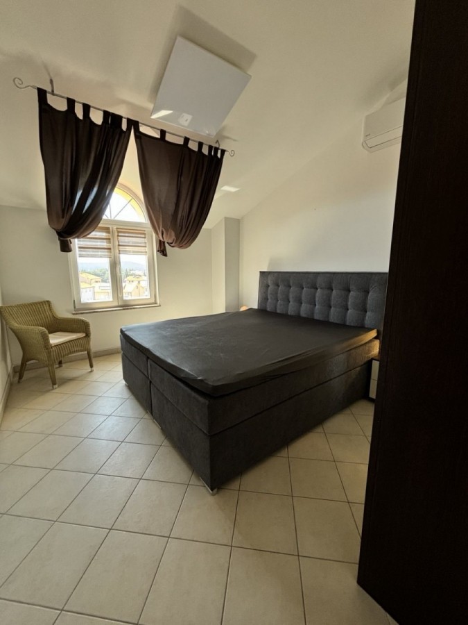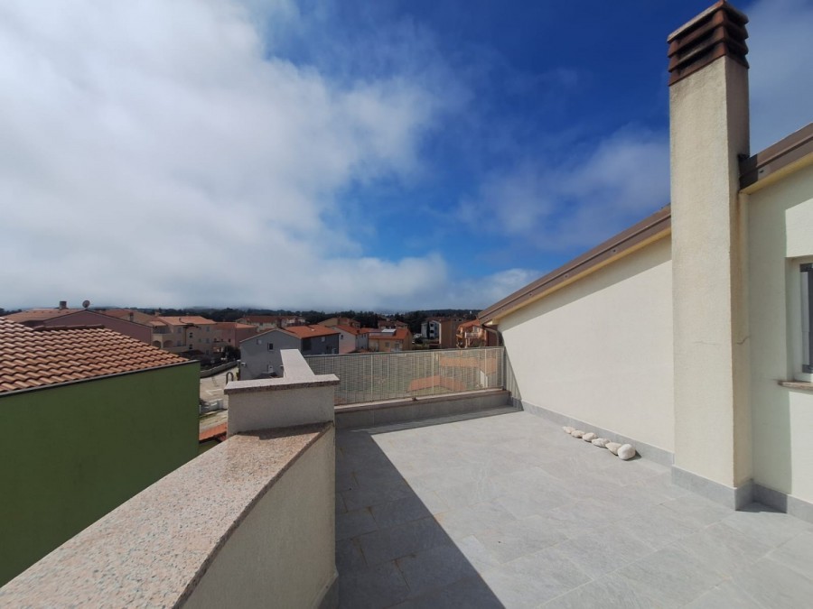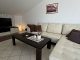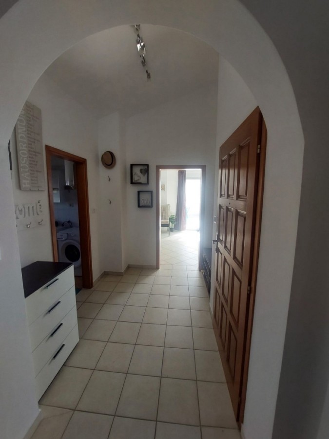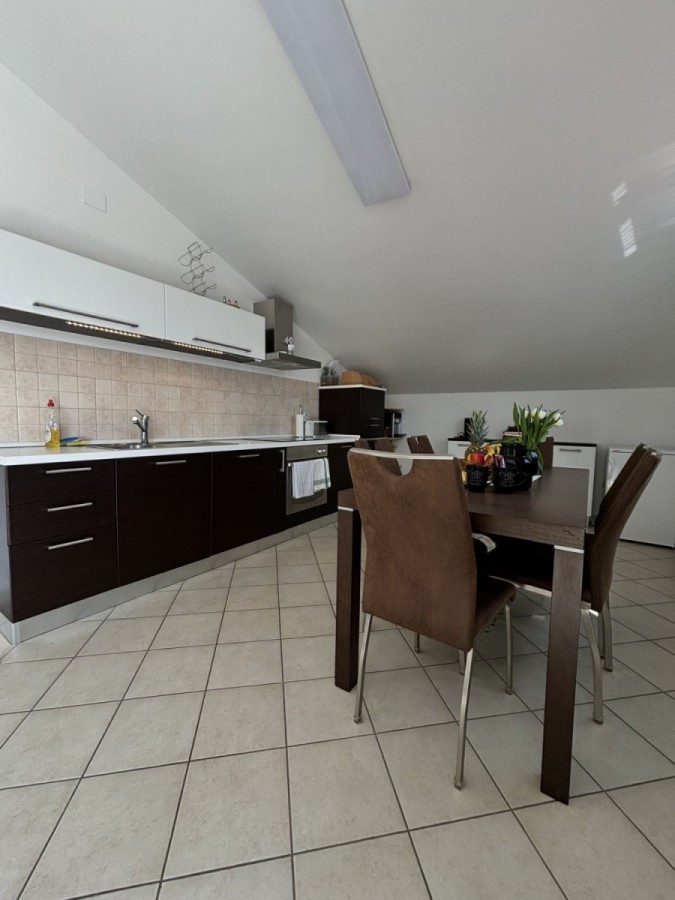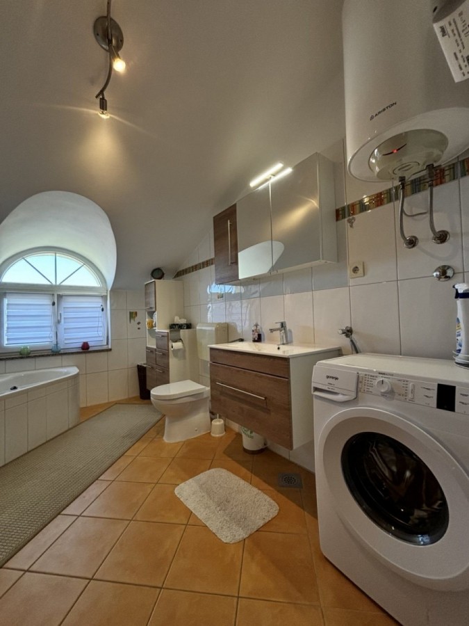Dieses geräumige Penthouse (90 m²) erstreckt sich über die gesamte dritte (oberste) Etage eines kleinen Wohngebäudes. Es befindet sich in einer ruhigen Gegend von Medulin, nur wenige Gehminuten vom Strand und allen wichtigen Annehmlichkeiten entfernt. Die Wohnung besteht aus einem Eingangsbereich, einem Wohnzimmer mit offener Küche und Essbereich, von dem aus man auf die großzügige Terrasse mit Meerblick gelangt, zwei Schlafzimmern, einem Badezimmer und einem Abstellraum. Ein privater Parkplatz direkt vor dem Gebäude ist ebenfalls inbegriffen. Ideal für Familienwohnen oder als Ferienimmobilie. Die Wohnung ist komplett möbliert und ausgestattet und wird in diesem Zustand verkauft. Preis: 265.000 €