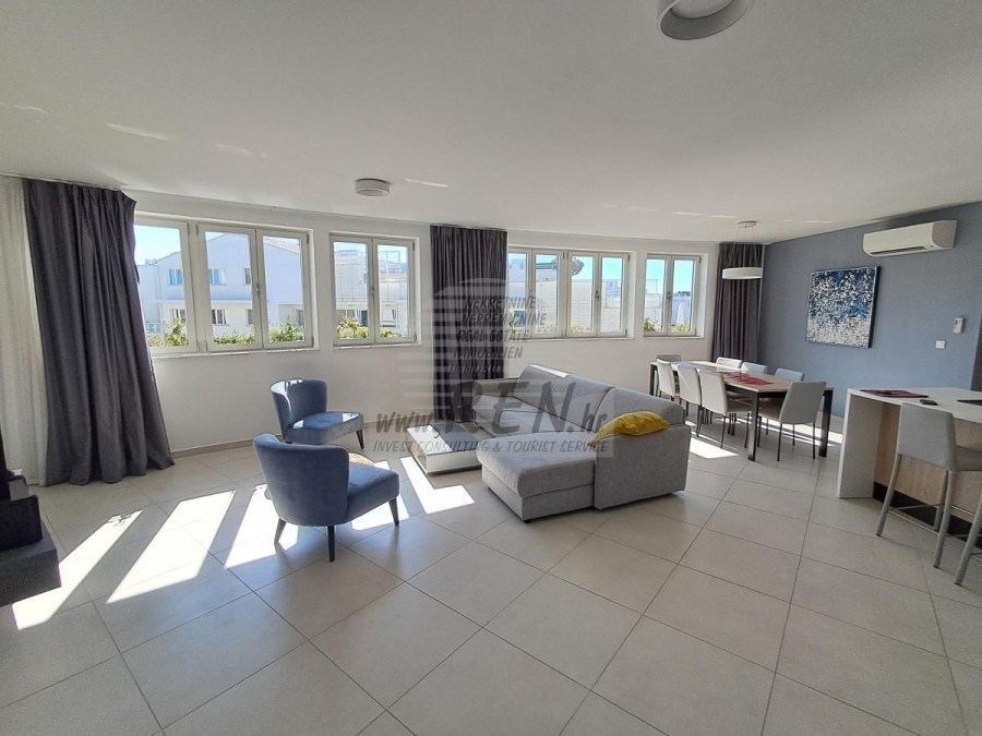 Luxus Immobilien Istrien, Zum Verkauf eine Wohnung in Umag direkt neben dem Strand Wohnung in Umag haben insgesamt 124 m2, Die Wohnung befindet sich im zweite Stock, nur 5 min. (50m) vom Meer und schönen Stränden, 5 min. (400m) sind Sie vom Stadtzentrum Umag entfernt. Die Wohnung besteht aus Küche/Wohnzimmer/Esszimmer, 3 Schlafzimmer, 2 Badezimmer, Utiliti, Terrasse. Die Wohnung ist ausgestattet mit Klimaanlage, Aufzug, 2 Parkplatz, MeerBlick, Pool. Die Wohnung ist nur etwa 100 m vom Verkaufsladen, vom Restaurant 100 m, Marktplatz 1000 m, Arzt 500 m, Apotheke 500 m, vom Flughafen in Pula 70 km und vom Flughafen in Portorož 20 km, von der Marine Umag 300 m, und von dem Aquapark (Istralandia) 10 km. Für weitere Auskünfte stehen wir Ihnen gerne zur Verfügung.