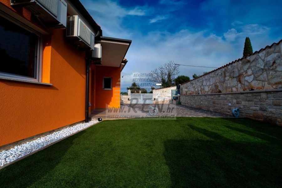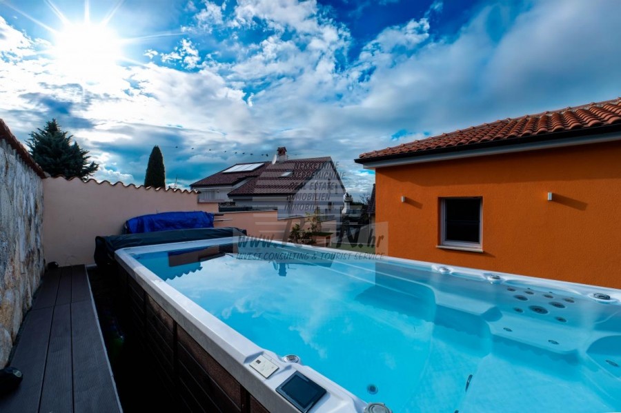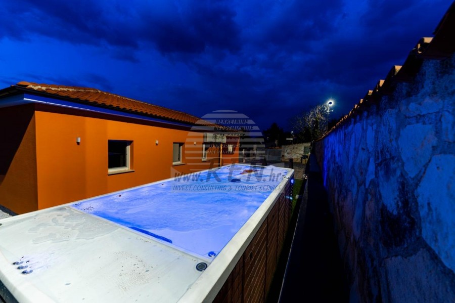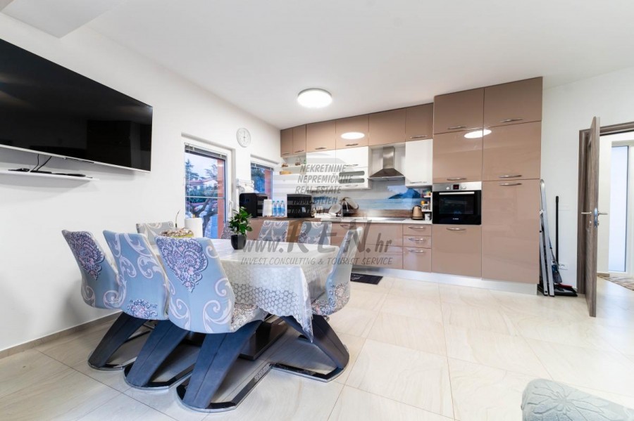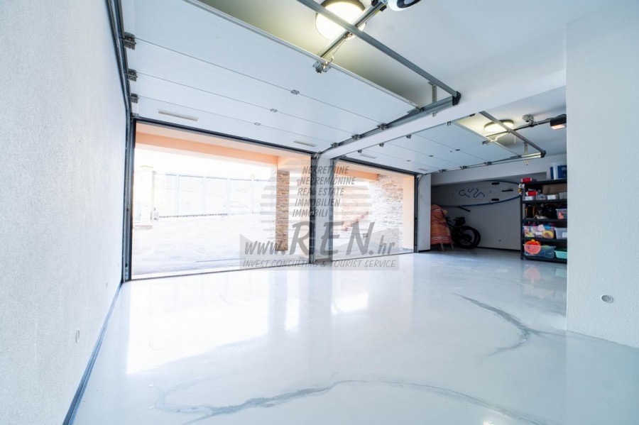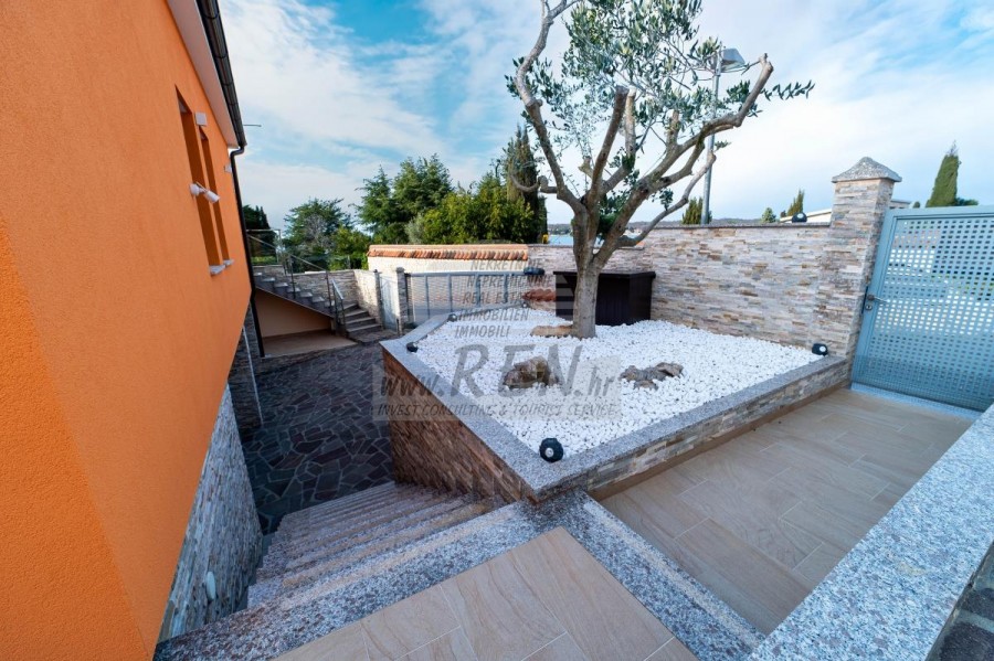 In einer der schönsten Lagen bei Novigrad befindet sich ein perfekt und modern gestaltetes Haus, das Komfort, Technologie und mediterranen Lebensstil vereint. Grunddaten: • Grundstück: 410 m² • Gesamtfläche: 170 m² • Wohnfläche: 120 m² • Garage: 50 m² (für 2 Autos) Aufteilung: • 3 geräumige Schlafzimmer • Großes, helles Wohnzimmer mit Küche • Badezimmer + separates WC Außenbereich: • 30 m² Terrasse mit wunderschönem Meerblick • Sicherheitsglasgeländer • Große Markise und Windschutzrollos • Geräumiger Tisch für bis zu 12 Personen • Kamin/Grill – ideal für gesellige Abende • Außensommerküche für ein mediterranes Erlebnis Pool & Garten: • Großer, moderner Pool mit Massage und Gegenstromanlage • Poolheizung mit Wärmepumpe • Poolabdeckung • Gepflegter Rasen und mediterrane Bepflanzung Zufahrt & Umgebung: • Elektrisches Einfahrtstor mit Fernbedienung • Gepflasterter Hof mit hochwertigem Porphyr Technische Vorteile: • Wärmedämmfassade • Hochwertige Fenster mit Insektenschutz und Rollläden • Heizung über Radiatoren und Klimaanlage • Smart-Home-System für Fernsteuerung • Vorbereitung für Ladestation für Elektroauto • Vorbereitung für Solarpaneele Das Haus bietet außergewöhnlichen Wohnkomfort das ganze Jahr über – warm, energieeffizient und für vollständige Entspannung oder luxuriösen Urlaub konzipiert.