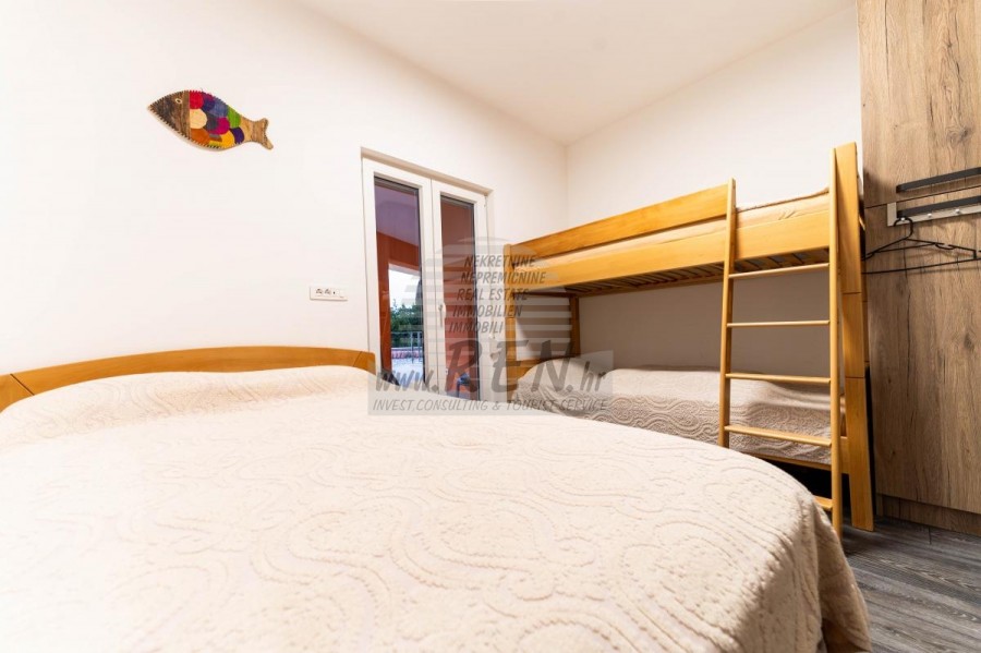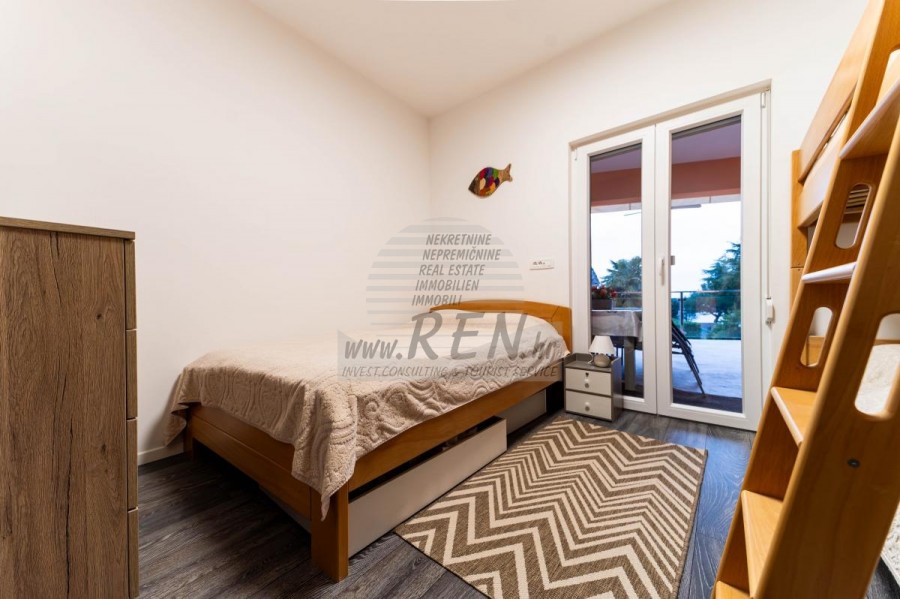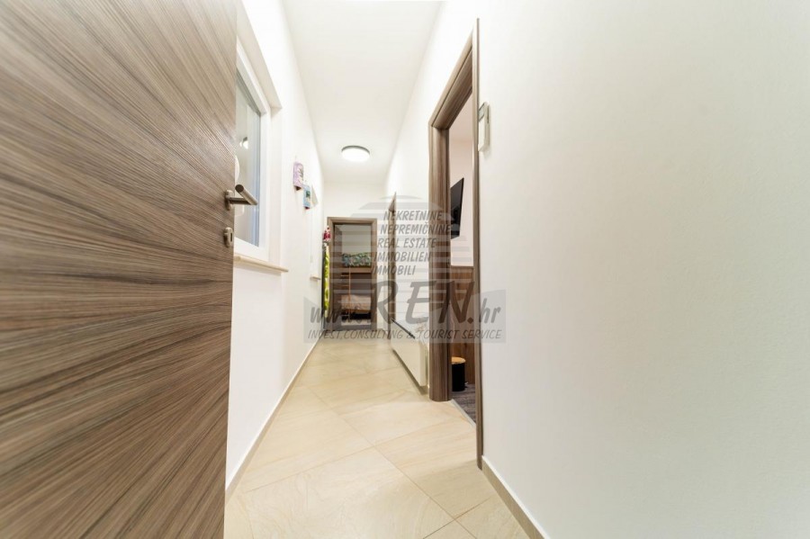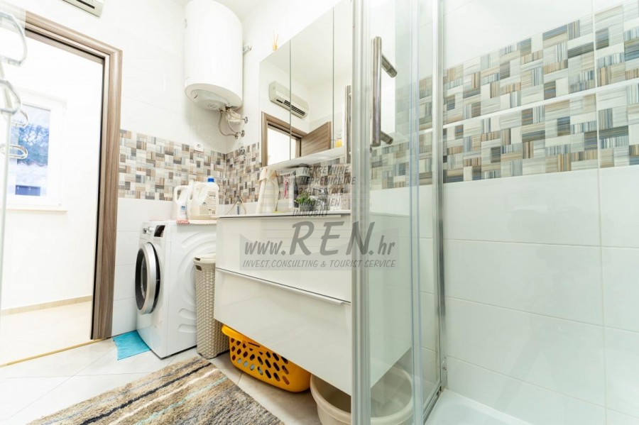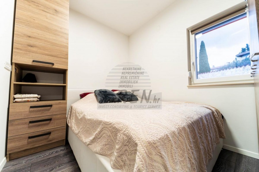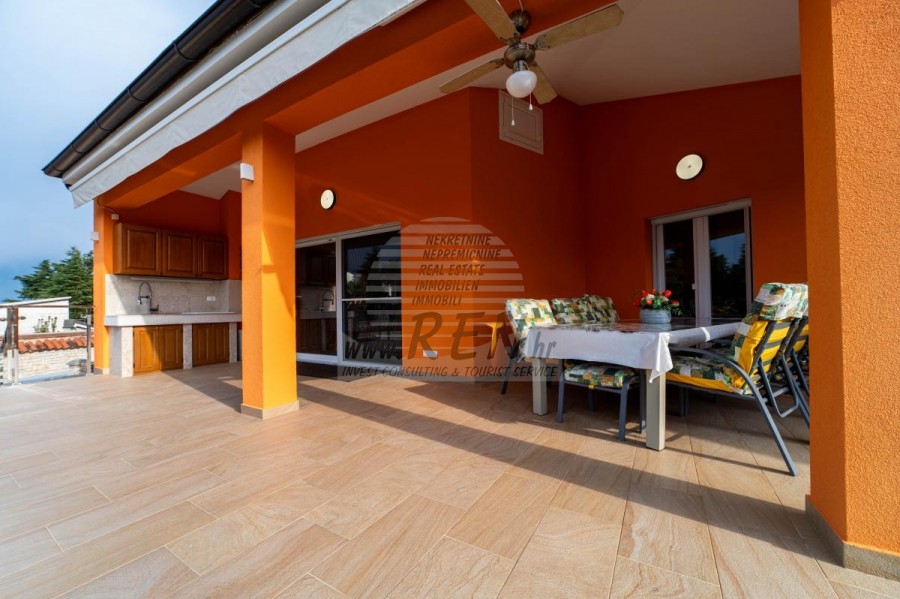 In einer der schönsten Lagen bei Novigrad befindet sich ein perfekt und modern gestaltetes Haus, das Komfort, Technologie und mediterranen Lebensstil vereint. Grunddaten: • Grundstück: 410 m² • Gesamtfläche: 170 m² • Wohnfläche: 120 m² • Garage: 50 m² (für 2 Autos) Aufteilung: • 3 geräumige Schlafzimmer • Großes, helles Wohnzimmer mit Küche • Badezimmer + separates WC Außenbereich: • 30 m² Terrasse mit wunderschönem Meerblick • Sicherheitsglasgeländer • Große Markise und Windschutzrollos • Geräumiger Tisch für bis zu 12 Personen • Kamin/Grill – ideal für gesellige Abende • Außensommerküche für ein mediterranes Erlebnis Pool & Garten: • Großer, moderner Pool mit Massage und Gegenstromanlage • Poolheizung mit Wärmepumpe • Poolabdeckung • Gepflegter Rasen und mediterrane Bepflanzung Zufahrt & Umgebung: • Elektrisches Einfahrtstor mit Fernbedienung • Gepflasterter Hof mit hochwertigem Porphyr Technische Vorteile: • Wärmedämmfassade • Hochwertige Fenster mit Insektenschutz und Rollläden • Heizung über Radiatoren und Klimaanlage • Smart-Home-System für Fernsteuerung • Vorbereitung für Ladestation für Elektroauto • Vorbereitung für Solarpaneele Das Haus bietet außergewöhnlichen Wohnkomfort das ganze Jahr über – warm, energieeffizient und für vollständige Entspannung oder luxuriösen Urlaub konzipiert.