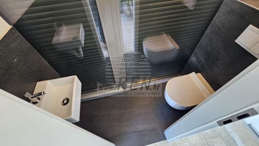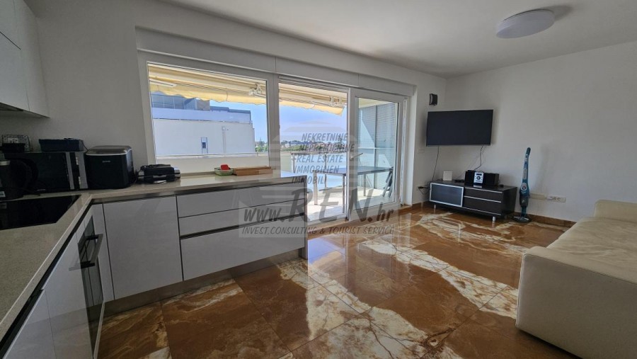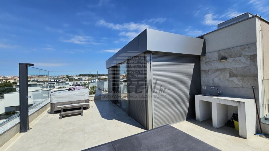 Penthouse mit Dachterrasse und Meerblick – Novigrad In attraktiver Lage in Novigrad, nur 500 m vom Meer, den Stränden und allen Annehmlichkeiten entfernt, befindet sich diese moderne Wohnung im zweiten Stock eines Gebäudes mit Aufzug. Die Wohnung verfügt über zwei Schlafzimmer, ein Badezimmer sowie ein Wohnzimmer mit Küche. Das Highlight ist die großzügige Dachterrasse mit wunderschönem Blick auf das Meer und die Altstadt von Novigrad. Zur Wohnung gehören außerdem ein Abstellraum im Erdgeschoss und 2 Parkplatz. Eine hervorragende Gelegenheit zum Wohnen oder als Investition.