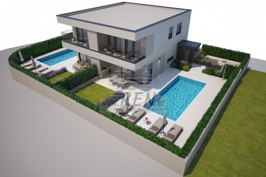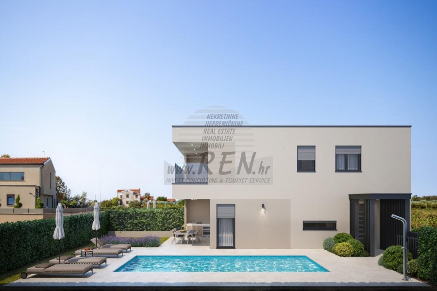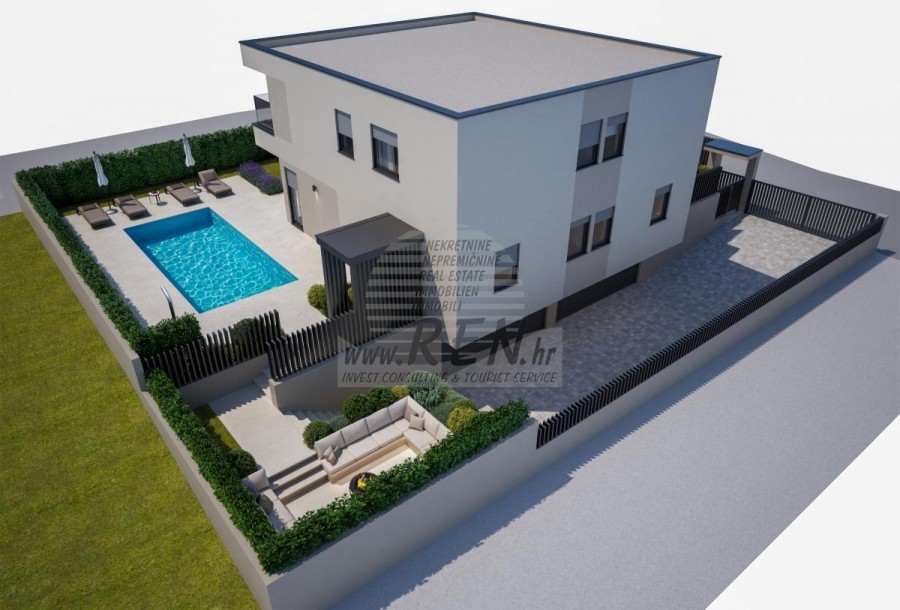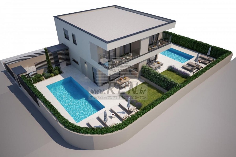 Moderne Doppelhaushälfte mit Pool, Garage für 2 Autos und Keller in Top-Lage in Novigrad In ruhiger und attraktiver Lage von Novigrad steht eine moderne Doppelhaushälfte im Bau zum Verkauf, konzipiert als zwei separate Wohneinheiten. Jede Haushälfte verfügt über einen funktionalen und hochwertig geplanten Grundriss mit drei geräumigen Schlafzimmern, Keller, privater Garage mit Stellplätzen für zwei Autos sowie eigenem Pool für höchsten Komfort und Privatsphäre. Die Fußbodenheizung sorgt ganzjährig für angenehmes Wohnen, während moderne Bauweise und sorgfältig ausgewählte Ausstattung einen hohen Wohnstandard garantieren. Die hervorragende Lage in Meeresnähe und nahe aller wichtigen Einrichtungen macht diese Immobilie ideal als Familienwohnsitz, Ferienhaus oder Investition.