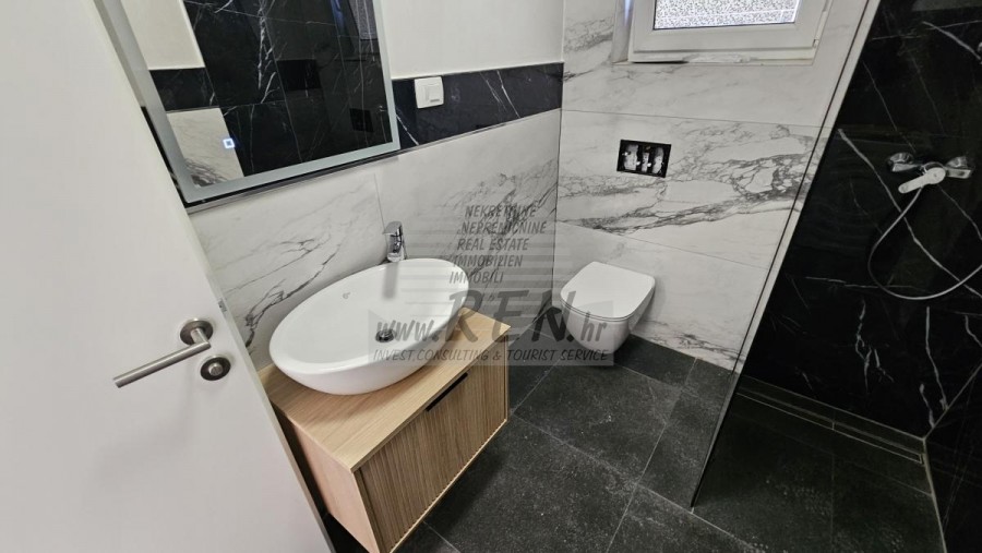 Moderne Erdgeschosswohnung mit großzügiger Terrasse in ruhiger Lage nahe Novigrad Beschreibung: Zum Verkauf steht eine neue und vollständig ausgestattete Erdgeschosswohnung in ruhiger Lage in der Nähe von Novigrad, nur 1,5 km vom Meer und Stadtzentrum entfernt. Die Wohnung verfügt über einen komfortablen und funktionalen Grundriss mit einem Schlafzimmer, einem Wohnzimmer mit Küche und Essbereich sowie einem Badezimmer. Besonders hervorzuheben ist die großzügige Terrasse mit 20 m², ideal zum Entspannen und Genießen im Freien das ganze Jahr über. Die Immobilie ist modern eingerichtet, komplett ausgestattet und ohne zusätzliche Investitionen sofort bezugsfertig. Die ruhige Lage bietet Privatsphäre und Erholung und gleichzeitig Nähe zu allen Einrichtungen des täglichen Lebens oder für den Urlaub. Zur Wohnung gehört außerdem ein privater Parkplatz. Diese Immobilie ist ideal zum Wohnen, als Ferienwohnung oder als Investition zur touristischen Vermietung, dank der hervorragenden Lage nahe Novigrad sowie der Kombination aus Komfort, Qualität und Funktionalität.