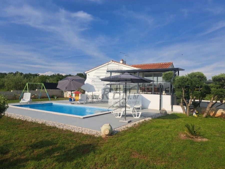 U mirnom i idiličnom kraju, nedaleko od Poreča, nalazi se ova prekrasna prizemna kuća površine 100 m², okružena velikom okućnicom od čak 3.000 m² pretežito zasađenom maslinama. Nalazi se na strateški povoljnoj lokaciji – udaljena je samo nekoliko minuta od autoceste i grada Poreča, pružajući istovremeno savršen balans mira, tišine i dobre prometne povezanosti. Kuća je potpuno opremljena i uređena za udoban život ili iznajmljivanje. Sastoji se od dvije prostrane spavaće sobe i dva moderno opremljena kupatila, a posebnu draž dodaje ljetna kuhinja, idealna za ugodne trenutke u društvu. U objektu su postavljene klima-uređaji, a svi prozori opremljeni su komarnicima, osiguravajući optimalnu udobnost topline ljetnih mjeseci. Uz glavnu kuću, na imanju se nalaze i pomoćni objekti ukupne površine 67 m², dok je glavna atrakcija privatni bazen s jacuzzijem, gdje možete opušteno uživati u suncu i prirodi. Cijeli prostor odiše mediteranskim šarmom, a maslinik daje dodatnu vrijednost cijelom ambijentu. Kuća je već uključena u sustav najma, što predstavlja odličnu priliku za dodatne prihode, ali je jednako pogodna i kao trajni dom za one koji cijene kvalitetan život u blizini Istre. Idealna je za obitelji koje traže miran odmor, ali i za investitore koji žele iskoristiti turistički potencijal ove lokacije. Riječ je o rijetkoj prilici na tržištu – spoj mira, prirode i praktične lokacije. Za sve dodatne informacije i mogućnost pregleda, slobodno se javite.